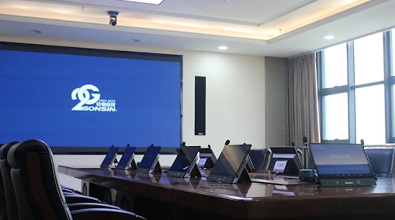 GONSIN es un fabricante líder especializado en la investigación y el desarrollo de sistemas de conferencias. GONSIN toma la Plataforma de Gestión de Conferencias Smart Link como núcleo, y los productos abarcan el Sistema de Votación en Conferencias, el Sistema de Discusión en Conferencias, el Sistema de Interpretación Simultánea, el Sistema de Conferencias Sin Papel, el Sistema de Registro, el Sistema de Reserva de Conferencias, el Sistema de Visualización, el Sistema de Control Central, el Sistema de Megafonía para Conferencias, el Sistema de Megafonía Digital, el Sistema de Tarjeta de Mesa Electrónica y el Sistema de Interacción Multimedia Visual. GONSIN también innova con productos Conference+ como el Sistema ASR, el Micrófono Array Inteligente con Cancelación de Ruido y el Sistema de Gobernanza de Base Internet +.