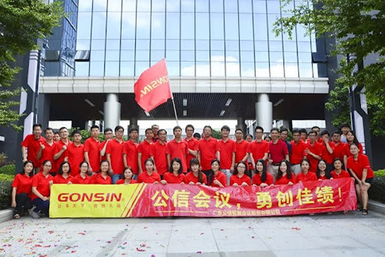 Con avanzadas capacidades de diseño industrial, GONSIN no solo cuenta con instalaciones avanzadas de I+D, producción y pruebas, sino que también ha establecido un sistema completo de garantía de servicio postventa, que cumple con el estándar nacional de cinco estrellas del Sistema de Evaluación de Servicio Postventa de Productos. Actualmente, se han establecido seis filiales de GONSIN: Zhejiang GONSIN, Beijing GONSIN, Anhui GONSIN, Shenzhen GONSIN, Sichuan GONSIN y Guangdong Daxin. Además, GONSIN ha establecido centros de operación en Jiangxi, Fujian y Xinjiang. Asimismo, GONSIN explora activamente el mercado global y se ha convertido en uno de los mejores proveedores de equipos para conferencias del mundo.