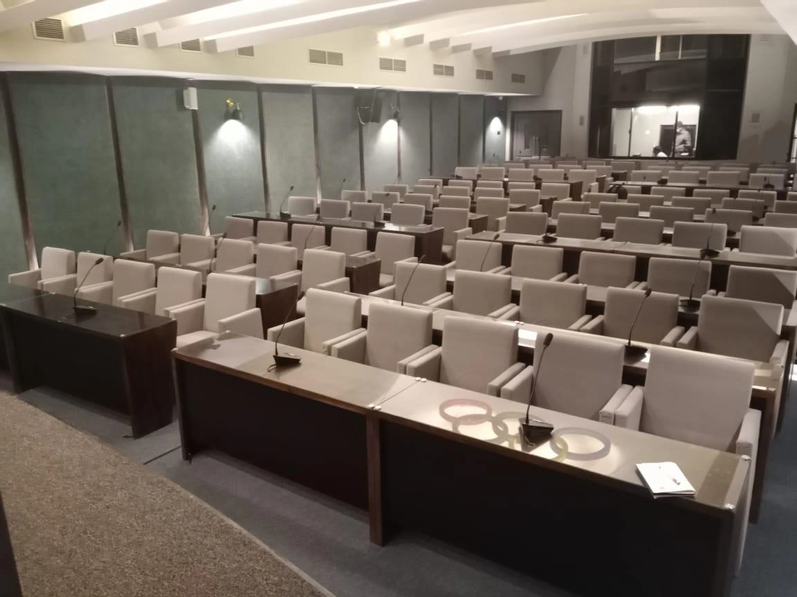 Le système de discussion GONSIN série 4300 a été adopté, intégrant les fonctions de discussion, de vote et d’interprétation simultanée. Le design du terminal 4300 s’inspire du style industriel moderne à base d’éléments géométriques, avec une finition soignée. Doté d’une fonction d’interprétation simultanée filaire à 6 canaux intégrée, il répond aux besoins du Comité national olympique du Sri Lanka pour ses réunions multilingues quotidiennes et événements. Quant à la fonction de vote, elle permet de satisfaire les exigences des réunions officielles telles que les votes et résolutions.