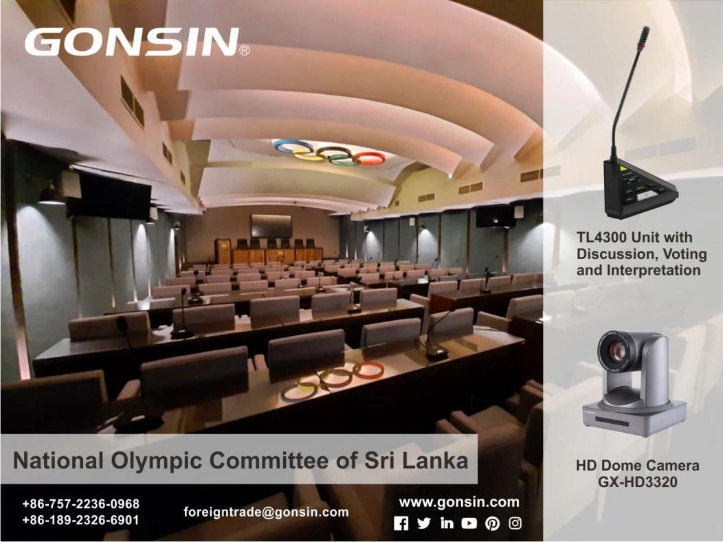 Depuis 19 ans, GONSIN se concentre sur l’industrie des systèmes de conférence professionnels et a reçu de nombreuses éloges sur le marché. Conformément aux exigences du Comité national olympique du Sri Lanka concernant l’utilisation de ses salles de conférence et les critères stricts de qualité des équipements, GONSIN a conçu un ensemble de solutions globales stables, faciles à utiliser et capables de répondre aux besoins diversifiés des utilisateurs en matière de fonctions de conférence.