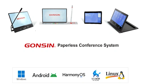 — Le système sans papier de GONSIN prend en charge plusieurs systèmes d’exploitation, notamment Windows, Android, HarmonyOS, Kylin et Linux, pouvant être utilisés séparément ou combinés, offrant ainsi de puissantes capacités de communication multiplateforme.Le système prend en charge diverses formes d’installation, y compris le levage électrique, le retournement encastré, le placement de bureau et les tablettes sans fil, répondant à différents besoins de conception.Les fonctionnalités sans papier incluent : enregistrement des conférences, consultation de documents, tableau blanc annoté, affichage multimédia, vote électronique, interprétation simultanée, partage d’écran, annotation simultanée multi-utilisateurs, communication par messages et service d’appel, toutes personnalisables.
