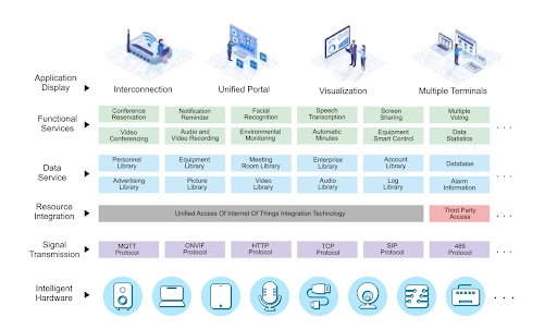 — La plateforme relie les cinq grands processus de gestion : préparation pré-conférence, entrée en conférence, tenue de la conférence, exploitation et maintenance, ainsi que traitement post-conférence, ce qui améliore efficacement l’efficacité des conférences, réduit les coûts et enrichit l’expérience des participants.